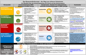 Auf der Grundlage der „Empfehlungen der Ständigen Konferenz der Kultusminister der Länder in der Bundesrepublik Deutschland, der Deutschen Vereinigung für Sportwissenschaft und des Bundesverbandes zur Förderung der Schwimmausbildung für den Schwimmunterricht in der Schule Beschluss der Kultusministerkonferenz vom 04.05.2017, Beschluss des Bundesverbandes zur Förderung der Schwimmausbildung vom 18.09.2017, Beschluss der Deutschen Vereinigung für Sportwissenschaft vom 04.09.2017 wurde im Auftrag der Sportkommission der Kultusministerkonferenz (KMK) ein „Schulschwimmpass“ entwickelt, der sich am Niveaustufenkonzept der Empfehlungen orientiert.